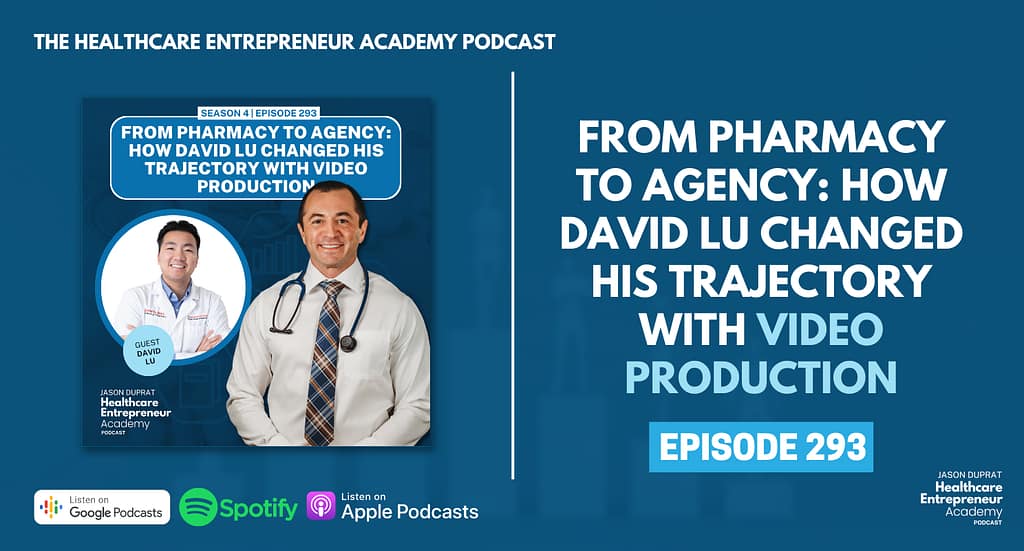 Jason A. Duprat, Entrepreneur, Healthcare Practitioner, and Host of the Healthcare Entrepreneur Academy podcast, sits down with David Lu, Founder of Axon Video Strategy. In this episode, David shares how he combined his years of Pharmacy experience, passion for Business, and for Video Production expertise to build his value-driven career today. We also learn what separates a regular skill from an in-demand, client-centric service. Tune in to learn more of David’s timeless wisdom.
